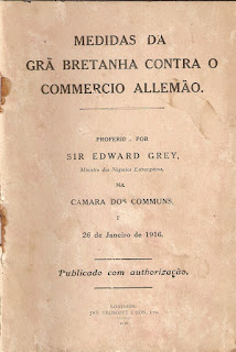 Não deixa por isso de ser irónico que, destes 4 folhetos ingleses (seguramente, destinados a Portugal), em imagem, um deles se ocupe a verberar, em 1916, Os Horrores de Wittenberg, sobre as condições desumanas dos prisioneiros britânicos em território alemão, durante a I Grande Guerra. Chamo ainda a atenção para o folheto A Perspectiva da Guerra, que foi subscrito, em 1915, pelo célebre criador de Sherlock Holmes - Arthur Conan Doyle. O opúsculo destinava-se, principalmente, a justificar a Expedição dos Dardanelos, tentando desvalorizar a derrota e as muitas mortes de soldados britânicos (cerca de 100.000) por que se saldou.